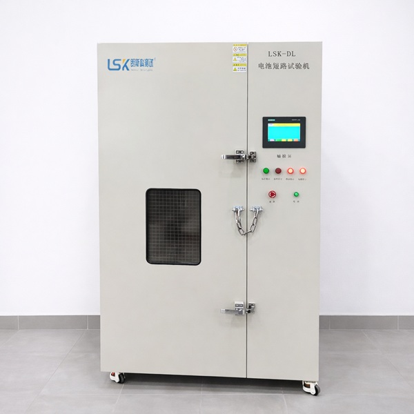 It uses a Siemens PLC to control the operation of a stepper motor. This equipment is purpose-built for safety testing of lithium-ion cells/battery packs for portable electronic devices, and complies with Clause 5.5 of JIS C 8714:2007, as well as the test requirements of GB 8897 and UL 1642. The test chamber is equipped with fire protection and an exhaust/ventilation system (to discharge waste gases after the test), and includes a fire-resistant observation window. The pressure-loading unit features a touchscreen, menu-driven interface. Two key test parameters—test pressure and pressure holding time—can be set via buttons. It also supports zeroing/calibrating the initial pressure, and automatically displays the measured pressure, battery voltage and voltage drop, and the actuation/pressing speed